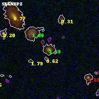 Object #5450   x,y = (2330, 1712)   RA, Dec = (07:23:22.416, -73:28:02.28) = (110.84340, -73.46730)   BPZ = 3.594 [3.535--3.737]   type = 8.70 (SB2_B10 - SB1_B10)   stellarity = 0.03   chisq2 = 0.17   ODDS = 1.00   z_cluster = 0.390