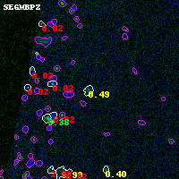 Black segments are analyzed here. Roll mouse over color images to view segments. Best viewed in a wide browser window (1200 pixels or more). Download SED & P(z) plots to view larger versions.