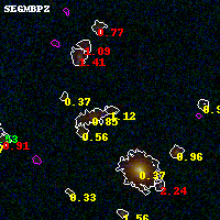 Black segments are analyzed here. Roll mouse over color images to view segments. Best viewed in a wide browser window (1200 pixels or more). Download SED & P(z) plots to view larger versions.