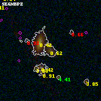 Black segments are analyzed here. Roll mouse over color images to view segments. Best viewed in a wide browser window (1200 pixels or more). Download SED & P(z) plots to view larger versions.