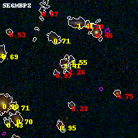 Black segments are analyzed here. Roll mouse over color images to view segments. Best viewed in a wide browser window (1200 pixels or more). Download SED & P(z) plots to view larger versions.