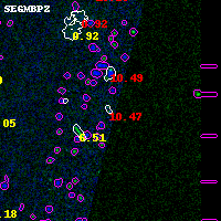 Black segments are analyzed here. Roll mouse over color images to view segments. Best viewed in a wide browser window (1200 pixels or more). Download SED & P(z) plots to view larger versions.