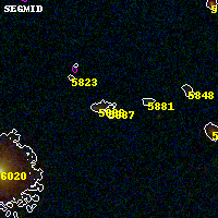 Object #5887   x,y = (2740, 1505)   RA, Dec = (07:23:16.656, -73:28:14.88) = (110.81940, -73.47080)   BPZ = 0.447 [0.111--3.777]   type = 9.80 (SB3_B10 - SB2_B10)   stellarity = 0.00   chisq2 = 1.13   ODDS = 0.20   z_cluster = 0.390