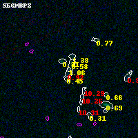 Black segments are analyzed here. Roll mouse over color images to view segments. Best viewed in a wide browser window (1200 pixels or more). Download SED & P(z) plots to view larger versions.