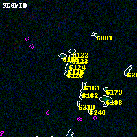 Black segments are analyzed here. Roll mouse over color images to view segments. Best viewed in a wide browser window (1200 pixels or more). Download SED & P(z) plots to view larger versions.