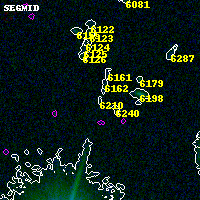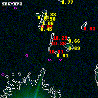 Black segments are analyzed here. Roll mouse over color images to view segments. Best viewed in a wide browser window (1200 pixels or more). Download SED & P(z) plots to view larger versions.