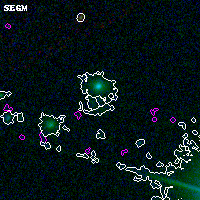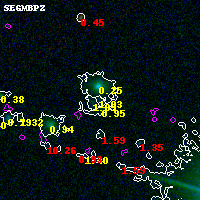 Black segments are analyzed here. Roll mouse over color images to view segments. Best viewed in a wide browser window (1200 pixels or more). Download SED & P(z) plots to view larger versions.