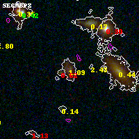 Black segments are analyzed here. Roll mouse over color images to view segments. Best viewed in a wide browser window (1200 pixels or more). Download SED & P(z) plots to view larger versions.