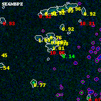 Black segments are analyzed here. Roll mouse over color images to view segments. Best viewed in a wide browser window (1200 pixels or more). Download SED & P(z) plots to view larger versions.