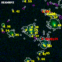 Black segments are analyzed here. Roll mouse over color images to view segments. Best viewed in a wide browser window (1200 pixels or more). Download SED & P(z) plots to view larger versions.