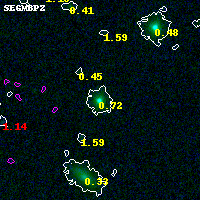 Black segments are analyzed here. Roll mouse over color images to view segments. Best viewed in a wide browser window (1200 pixels or more). Download SED & P(z) plots to view larger versions.