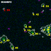 Black segments are analyzed here. Roll mouse over color images to view segments. Best viewed in a wide browser window (1200 pixels or more). Download SED & P(z) plots to view larger versions.