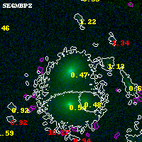 Black segments are analyzed here. Roll mouse over color images to view segments. Best viewed in a wide browser window (1200 pixels or more). Download SED & P(z) plots to view larger versions.