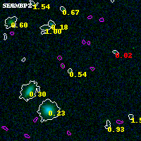 Black segments are analyzed here. Roll mouse over color images to view segments. Best viewed in a wide browser window (1200 pixels or more). Download SED & P(z) plots to view larger versions.