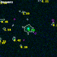 Black segments are analyzed here. Roll mouse over color images to view segments. Best viewed in a wide browser window (1200 pixels or more). Download SED & P(z) plots to view larger versions.