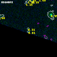 Black segments are analyzed here. Roll mouse over color images to view segments. Best viewed in a wide browser window (1200 pixels or more). Download SED & P(z) plots to view larger versions.