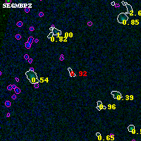 Black segments are analyzed here. Roll mouse over color images to view segments. Best viewed in a wide browser window (1200 pixels or more). Download SED & P(z) plots to view larger versions.