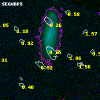 Black segments are analyzed here. Roll mouse over color images to view segments. Best viewed in a wide browser window (1200 pixels or more). Download SED & P(z) plots to view larger versions.