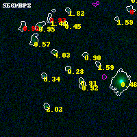 Object #993   x,y = (2043, 4092)   RA, Dec = (07:23:26.424, -73:25:39.72) = (110.86010, -73.42770)   BPZ = 0.276 [0.127--3.223]   type = 9.80 (SB3_B10 - SB2_B10)   stellarity = 0.00   chisq2 = 0.03   ODDS = 0.06   z_cluster = 0.390