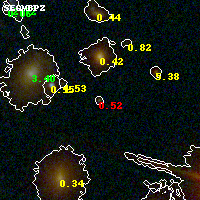 Object #1172   x,y = (1958, 1986)   RA, Dec = (07:23:27.648, -73:27:46.08) = (110.86520, -73.46280)   BPZ = 0.523 [0.413--4.314]   type = 9.60 (SB3_B10 - SB2_B10)   stellarity = 0.97   chisq2 = 1.19   ODDS = 0.39   z_cluster = 0.390