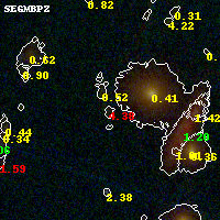 Black segments are analyzed here. Roll mouse over color images to view segments. Best viewed in a wide browser window (1200 pixels or more). Download SED & P(z) plots to view larger versions.