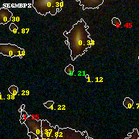 Object #915   x,y = (2152, 2308)   RA, Dec = (07:23:24.912, -73:27:26.64) = (110.85380, -73.45740)   BPZ = 5.205 [5.016--5.325]   type = 8.00 (SB1_B10)   stellarity = 0.98   chisq2 = 0.78   ODDS = 0.99   z_cluster = 0.390