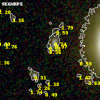 Black segments are analyzed here. Roll mouse over color images to view segments. Best viewed in a wide browser window (1200 pixels or more). Download SED & P(z) plots to view larger versions.