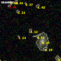 Black segments are analyzed here. Roll mouse over color images to view segments. Best viewed in a wide browser window (1200 pixels or more). Download SED & P(z) plots to view larger versions.