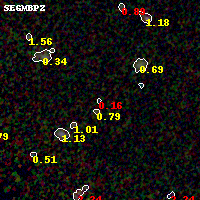 Black segments are analyzed here. Roll mouse over color images to view segments. Best viewed in a wide browser window (1200 pixels or more). Download SED & P(z) plots to view larger versions.