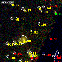 Black segments are analyzed here. Roll mouse over color images to view segments. Best viewed in a wide browser window (1200 pixels or more). Download SED & P(z) plots to view larger versions.