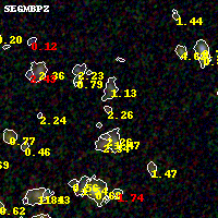 Black segments are analyzed here. Roll mouse over color images to view segments. Best viewed in a wide browser window (1200 pixels or more). Download SED & P(z) plots to view larger versions.