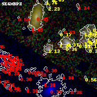 Black segments are analyzed here. Roll mouse over color images to view segments. Best viewed in a wide browser window (1200 pixels or more). Download SED & P(z) plots to view larger versions.
