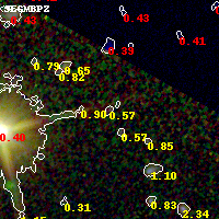 Black segments are analyzed here. Roll mouse over color images to view segments. Best viewed in a wide browser window (1200 pixels or more). Download SED & P(z) plots to view larger versions.