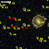 Black segments are analyzed here. Roll mouse over color images to view segments. Best viewed in a wide browser window (1200 pixels or more). Download SED & P(z) plots to view larger versions.