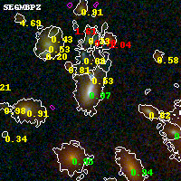 Black segments are analyzed here. Roll mouse over color images to view segments. Best viewed in a wide browser window (1200 pixels or more). Download SED & P(z) plots to view larger versions.