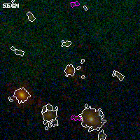 Black segments are analyzed here. Roll mouse over color images to view segments. Best viewed in a wide browser window (1200 pixels or more). Download SED & P(z) plots to view larger versions.
