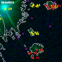 Black segments are analyzed here. Roll mouse over color images to view segments. Best viewed in a wide browser window (1200 pixels or more). Download SED & P(z) plots to view larger versions.