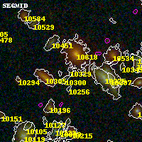 Black segments are analyzed here. Roll mouse over color images to view segments. Best viewed in a wide browser window (1200 pixels or more). Download SED & P(z) plots to view larger versions.