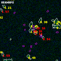 Black segments are analyzed here. Roll mouse over color images to view segments. Best viewed in a wide browser window (1200 pixels or more). Download SED & P(z) plots to view larger versions.
