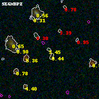 Black segments are analyzed here. Roll mouse over color images to view segments. Best viewed in a wide browser window (1200 pixels or more). Download SED & P(z) plots to view larger versions.