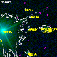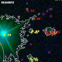 Black segments are analyzed here. Roll mouse over color images to view segments. Best viewed in a wide browser window (1200 pixels or more). Download SED & P(z) plots to view larger versions.