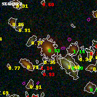 Black segments are analyzed here. Roll mouse over color images to view segments. Best viewed in a wide browser window (1200 pixels or more). Download SED & P(z) plots to view larger versions.