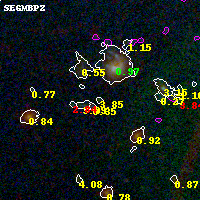 Black segments are analyzed here. Roll mouse over color images to view segments. Best viewed in a wide browser window (1200 pixels or more). Download SED & P(z) plots to view larger versions.