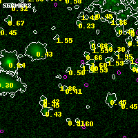 Black segments are analyzed here. Roll mouse over color images to view segments. Best viewed in a wide browser window (1200 pixels or more). Download SED & P(z) plots to view larger versions.