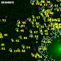 Black segments are analyzed here. Roll mouse over color images to view segments. Best viewed in a wide browser window (1200 pixels or more). Download SED & P(z) plots to view larger versions.