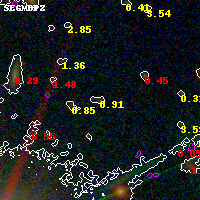 Black segments are analyzed here. Roll mouse over color images to view segments. Best viewed in a wide browser window (1200 pixels or more). Download SED & P(z) plots to view larger versions.