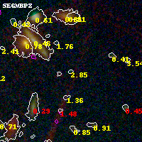 Black segments are analyzed here. Roll mouse over color images to view segments. Best viewed in a wide browser window (1200 pixels or more). Download SED & P(z) plots to view larger versions.