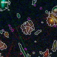 Black segments are analyzed here. Roll mouse over color images to view segments. Best viewed in a wide browser window (1200 pixels or more). Download SED & P(z) plots to view larger versions.