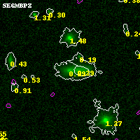 Black segments are analyzed here. Roll mouse over color images to view segments. Best viewed in a wide browser window (1200 pixels or more). Download SED & P(z) plots to view larger versions.
