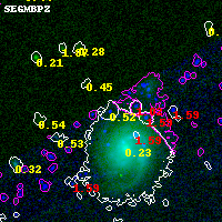 Black segments are analyzed here. Roll mouse over color images to view segments. Best viewed in a wide browser window (1200 pixels or more). Download SED & P(z) plots to view larger versions.